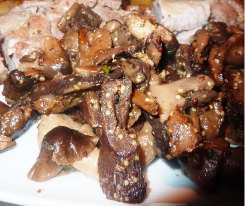 Dans une poele faire revenir les champignons pour qu'ils rendent leur eau, ajouter la persillade . Une fois qu'ils sont cuits les mettre dans le jus de la viande, remuez, dressez votre plat et servez.