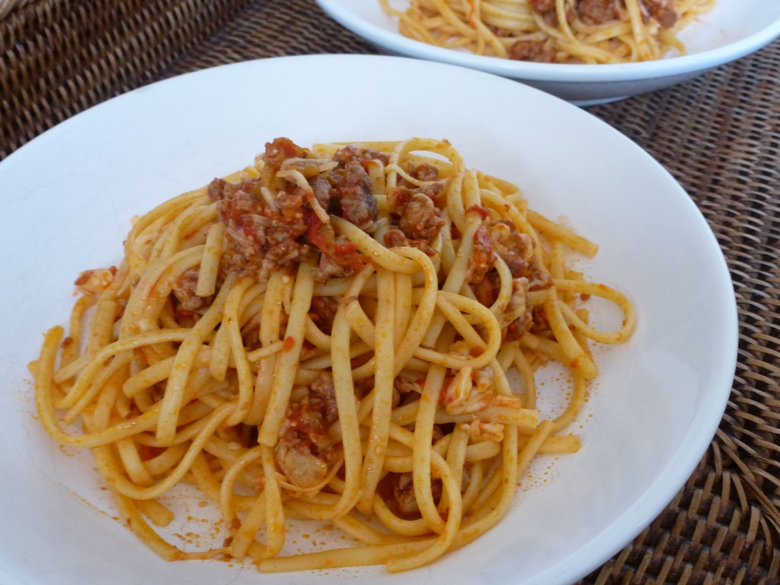 Ping : Spaghettis à la tomate & saucisse de Toulouse, façon Antoinette - Bleu Bazar